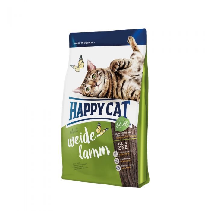Happy Cat Supreme Adult janjetina je potpuna hrana za sve odrasle mačke s lako probavljivom janjetinom i peradi, receptura bez ribe. All In One konceptom pokrivena je kontrola kuglica dlaka u probavnom traktu, dodan taurin, obilje bjelančevina životinjskog porijekla, pH kontrola za zdrav urinarni trakt, njega zubi, omega 3 i omega 6 masne kiseline za zdravu kožu i krzno, zagarantirano dobrog okusa. Hranjive tvari su savršeno prilagođene potrebama mačaka, dodane kroz Happy Cat Natural Life Concept , novozelandske školjke i laneno sjeme štite zglobove i jačaju imunološki sustav.